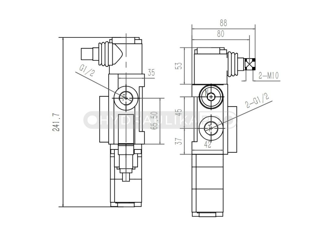 Hydraulický rozvádzač 1-sekciový, prietok 40 L/min s plávajúcou polohou od firmy Hydrolider.