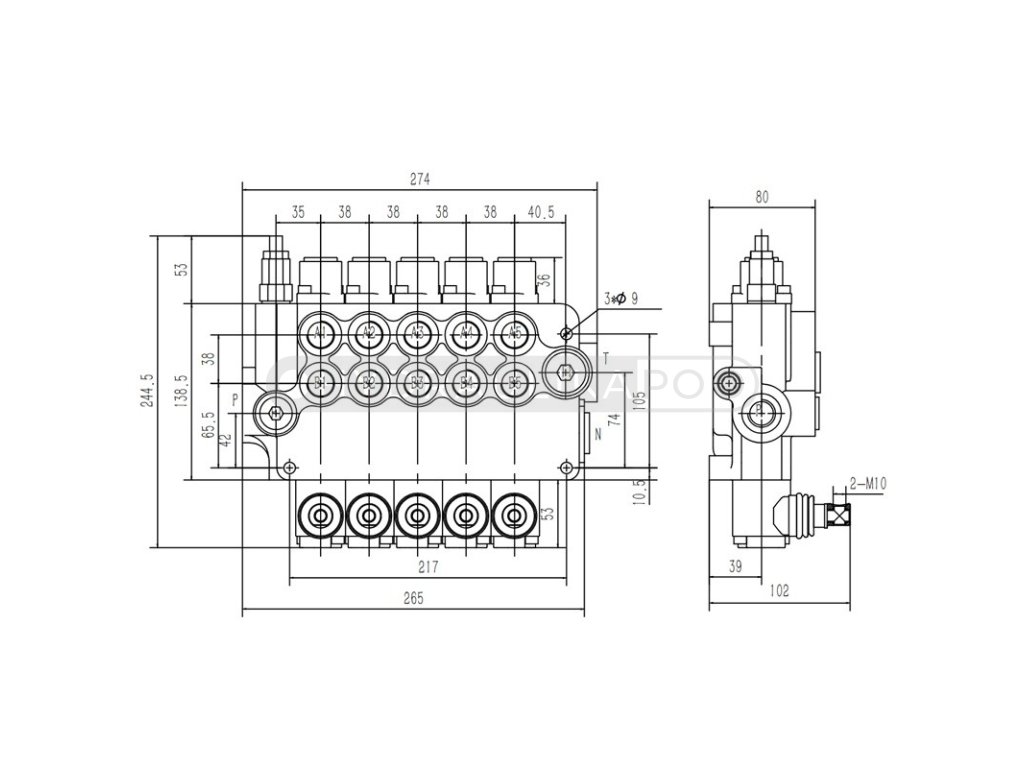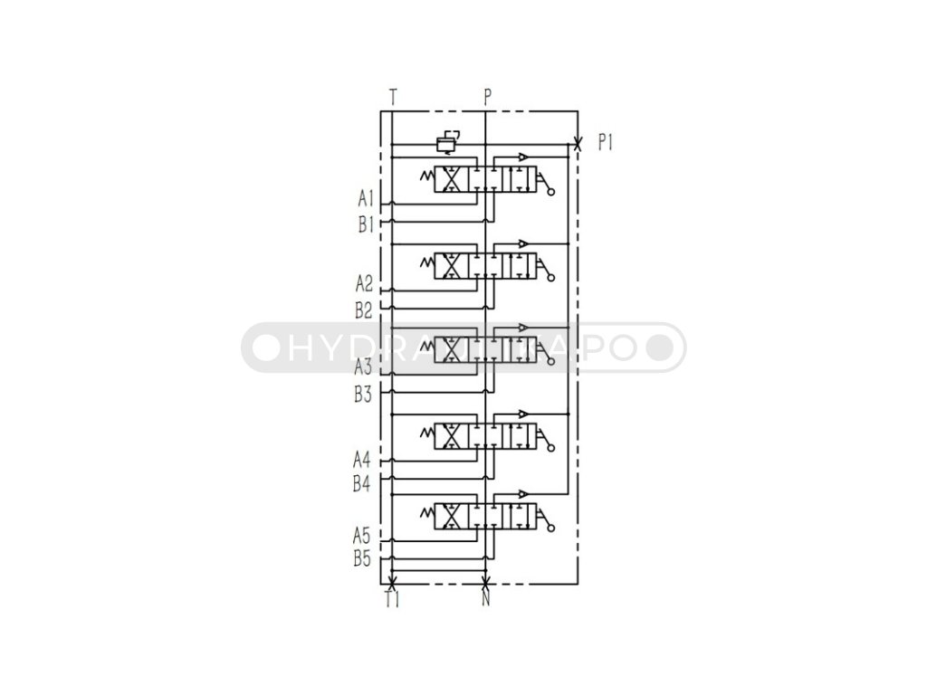 Hydraulický rozvádzač 5-sekciový, prietok 80 L/min od od od firmy Hydrolider.