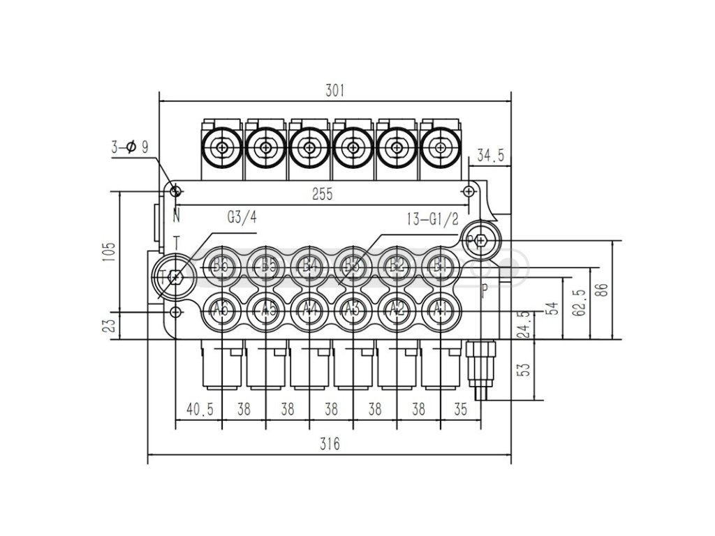 Hydraulický rozvádzač 6-sekciový, prietok 80 L/min od od od firmy Hydrolider.