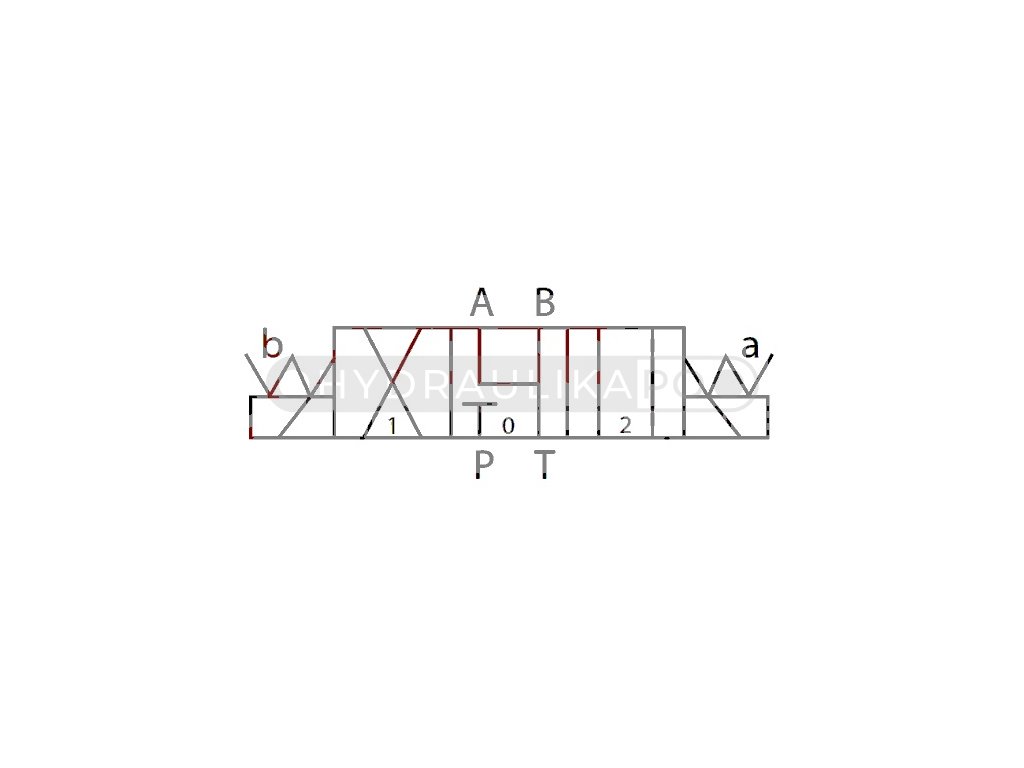 - Konfigurácia: dve cievky 24V DC, 3-polohový posúvač typu J stabilizovaný pružinou do polohy 0