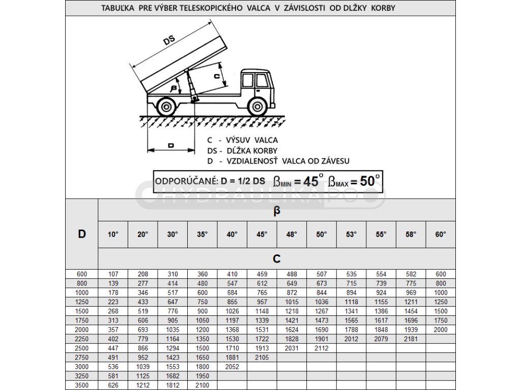 Teleskopický hydraulický valec s výsuvom 1050 mm určený pre vyklápanie korby nákladných automobilov, prívesov.