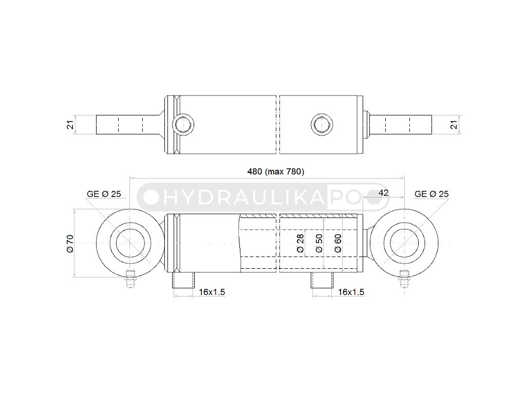 Dvojčinný hydraulický valec s výsuvom 300 mm na všeobecné použitie v poľnohospodárstve a priemysle. Vhodné na čelné a zadné hydrauliky traktorov.