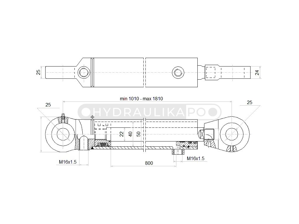 Hydraulický valec výsuv 800mm, 40/22/800