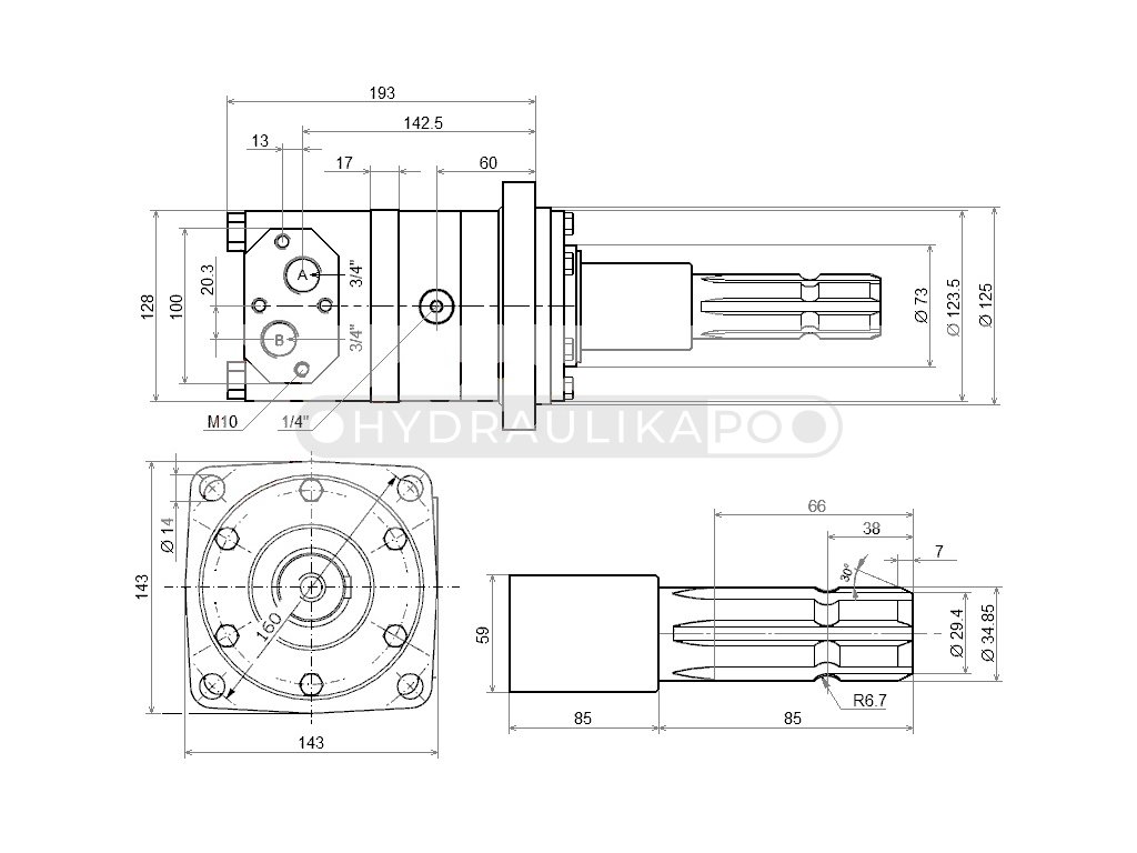 Orbitrálny hydromotor s veľkým výkonom určený na použitie v rôznych poľnohospodárskych a priemyselných zariadeniach. Veľmi dobre prenáša bočné zaťazenie a veľké krútiace momenty. Vhodný na prestavbu traktorov bez kardanového vývodu.