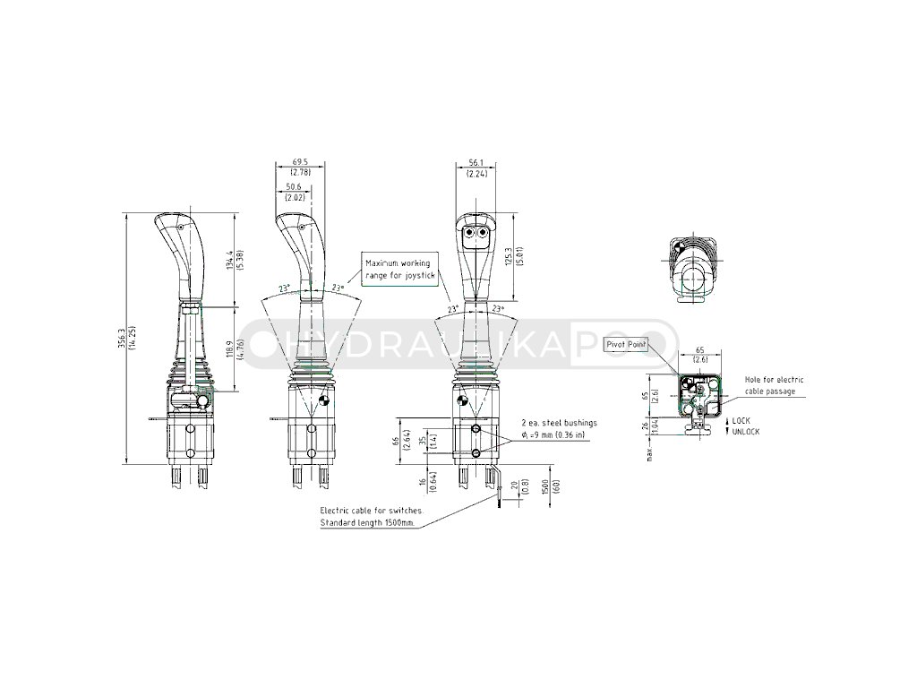 Joystick hydraulického rozvádzača ovládaného lanovodmi je určený na ovládanie 2 - sekčných hydraulických rozvádzačov cez lanovody, ktoré sú ukončené vidličkou. Vypínače umožňujú ovládanie 3. a 4. funkcie - hadraulických deličov. Vhodné na ovládanie čelných nakladačov hydraulických rúk, vývoziek, mlčovačov a podobne. Možnosť dokúpiť držiak joysticka.Dodatočné parametre