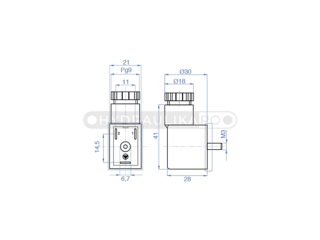 Konektor cievky vzduchového rozvádzača DIN 46244 určený na pripojenie ovládacieho napätia 12V DC a 24V DC k elektricky ovládaným vzduchovým rozvádzačom.