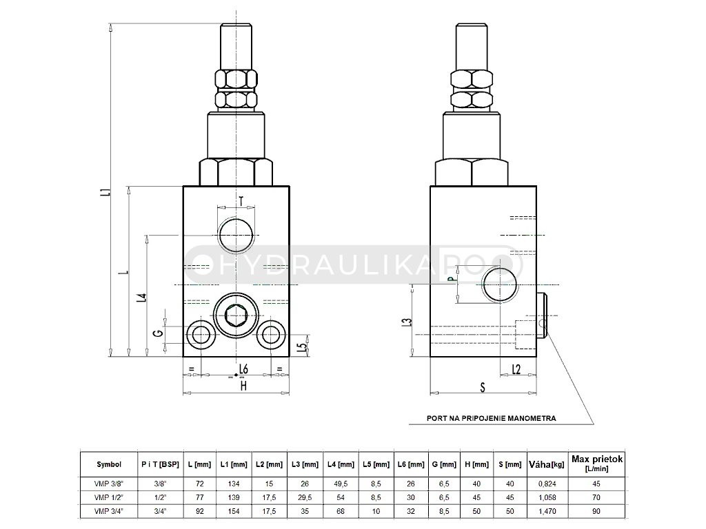 Poistný ventil regulovateľný 3/4" 80-300 bar
