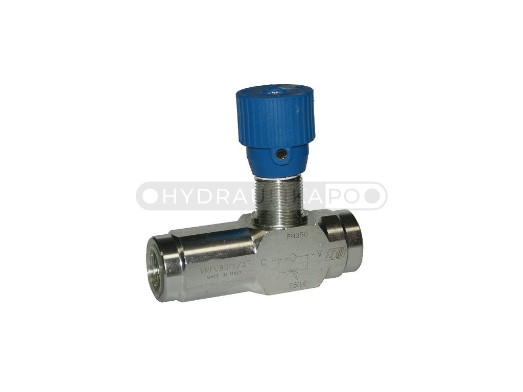 Škrtiaci ventil jednostranný 3/8" umožňuje priškrtiť prietok v jednom smere pričom v druhom smere ostáva plný prietok.